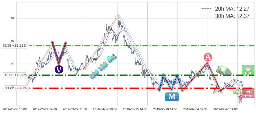 ♘ 阻力价格位12.99,可信任强度81.88%,距离最后交易2019-07-31 15:00形成的收盘价格12.14相差 +7.02%