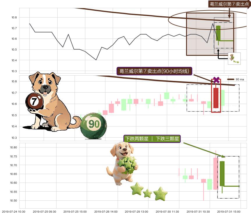从2019-07-02 09:30至2019-07-25 15:00,共包含108个小时,阶段股价下跌-7.48%,阶段股价变动位移路程比: 1 : 4