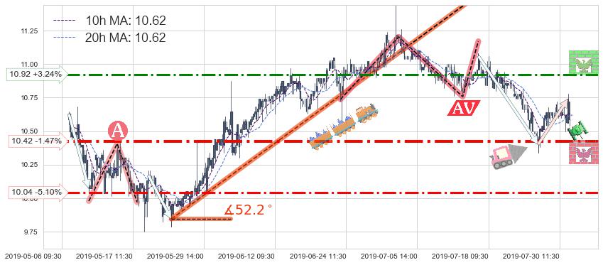 ♘ 支撑价格位10.42,可信任强度75.13%,距离最后交易2019-07-31 15:00形成的收盘价格10.58相差 -1.47%
