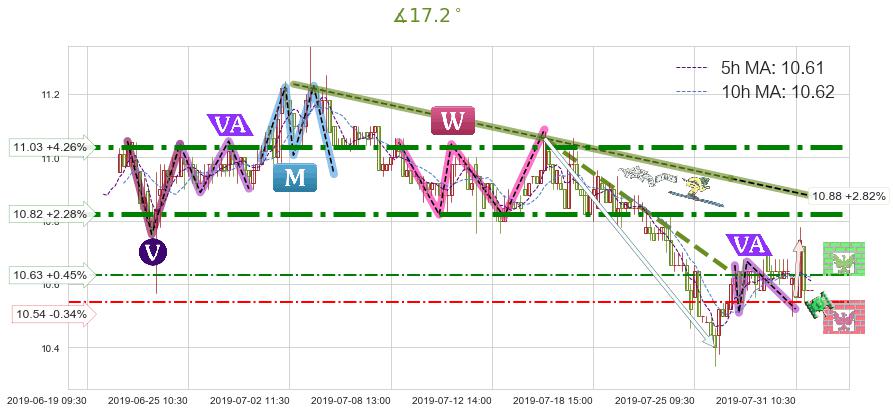 ♘ 阻力价格位10.63,可信任强度40.04%,距离最后交易2019-07-31 15:00形成的收盘价格10.58相差 +0.45%