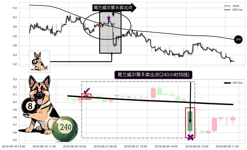 形态多维评估: ⚀ 2019-06-25 09:30:00-小时显现 葛兰威尔均线 240小时均线 第⑧卖出点 下降趋势的中继信号,后市看跌,卖出信号