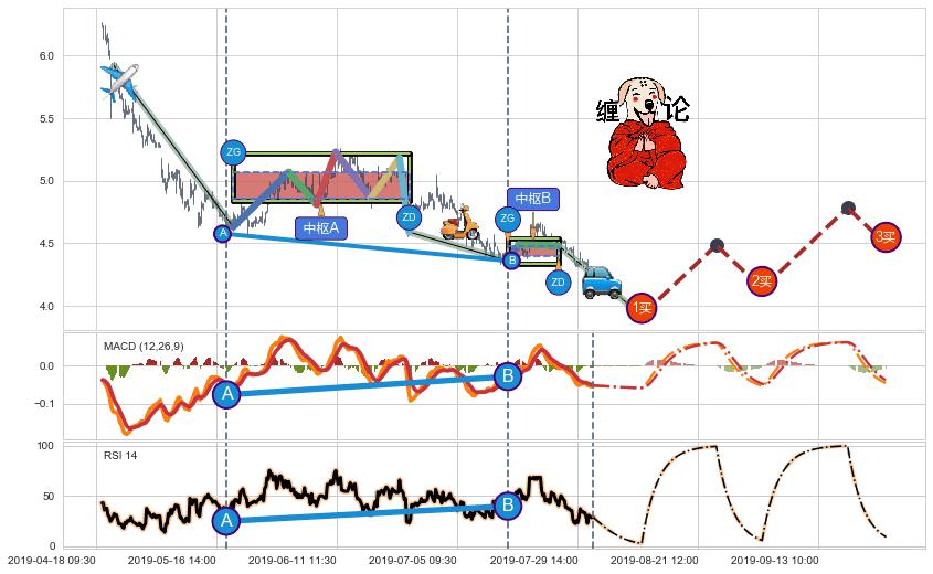 ➣ 【未完成】缠论 起点:04-24:13, 完成第1中枢A,完成第2中枢B,到达07-31:15