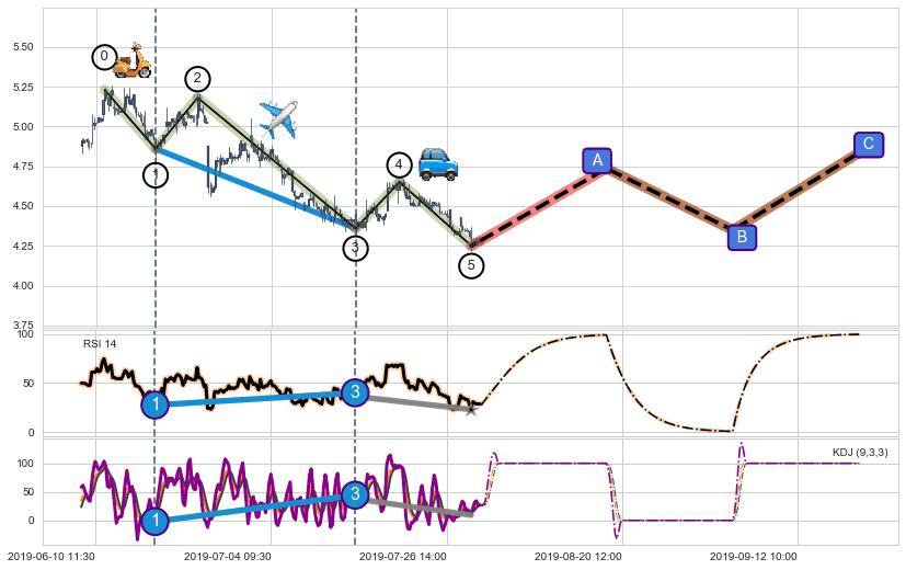 | 8 🅚:【高山滑雪】买入点 ➕ 🌊:波浪理论猜想下跌浪5已形成,猜想后续形成abc反弹上涨(均值回复) ☞ 看多信号 ⇥ 【均线】交织【图形】⇥ 综合量化分数: 51 | > |