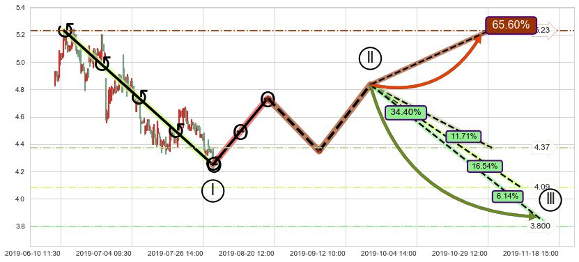 ➢ 循环浪继续向下【最低】位置(11-18:15, 3.800),匹配聚类样本比例17.86%, 可能性概率6.14%