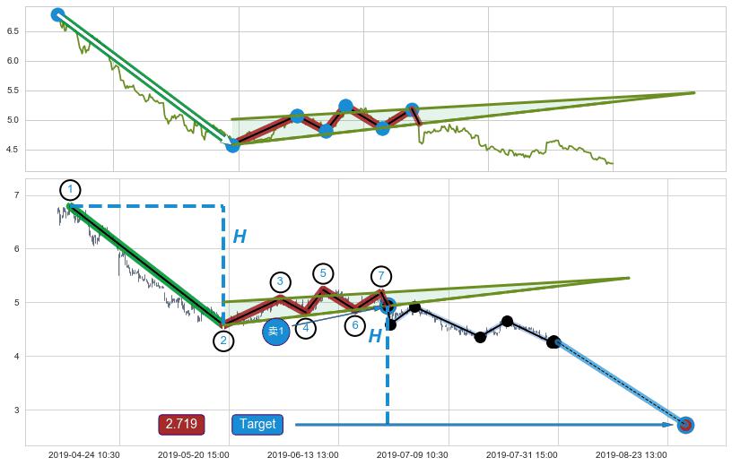 ➢ 最小中继整理跌幅→𝐇: 2.212 (𝐇楔型旗杆的长度:楔型起点→顶点)