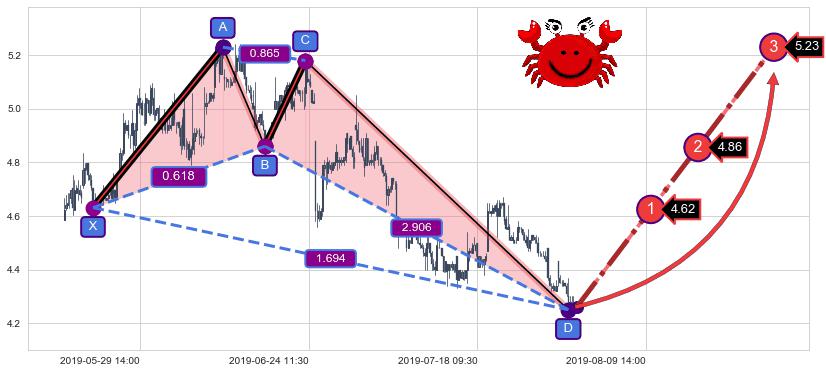 ➣ 已完成【螃蟹】形态起点X: 05-23:09, 终点D: 07-31:09, 共283交易小时