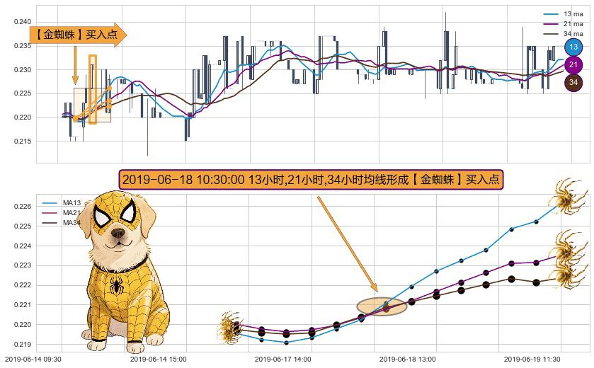 ⚀ 2019-06-18 10:30:00小时显现 13小时-21小时-34小时均线 【金蜘蛛】买入点 看多信号,后市看涨,买入