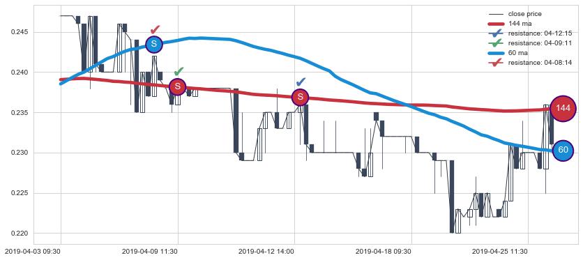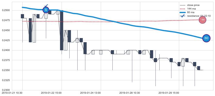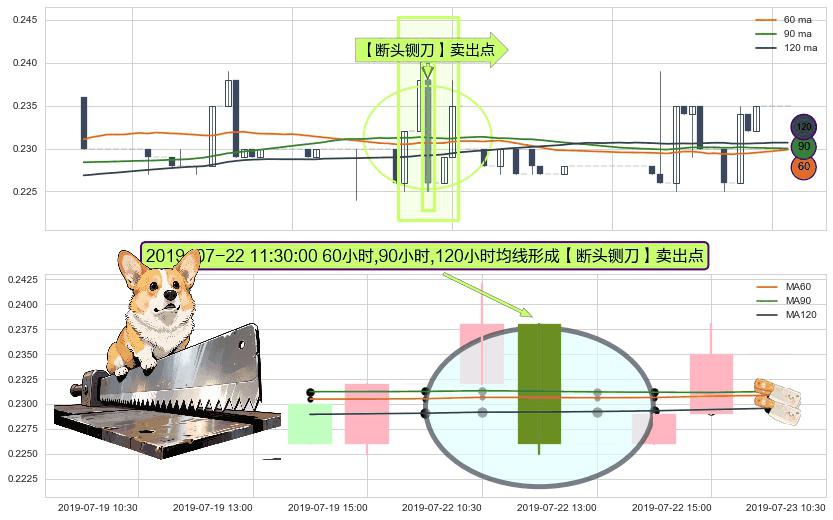 ⚀ 2019-07-22 11:30:00小时显现 60小时-90小时-120小时均线 【断头铡刀】卖出点 看空信号,后市看跌,卖出
