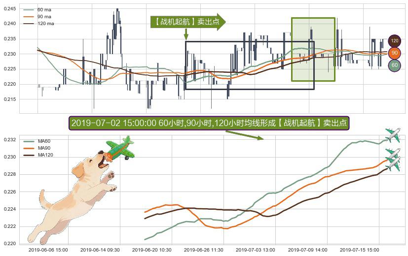 ⚀ 2019-06-18 09:30:00小时-2019-07-16 13:00:00小时显现 60小时-90小时-120小时均线 【战机起航】卖出点 看空信号,后市看跌,卖出