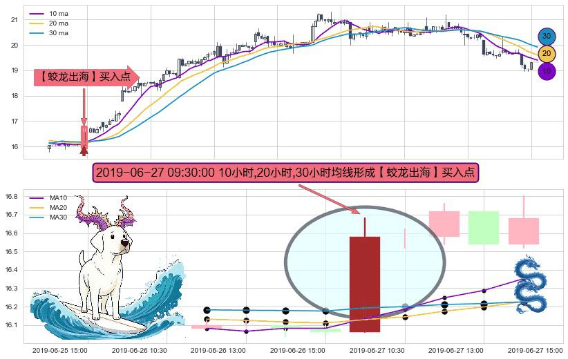形态多维评估: ⚀ 2019-06-27 09:30:00小时显现 10小时-20小时-30小时均线 【蛟龙出海】买入点 看多信号,后市看涨,买入
