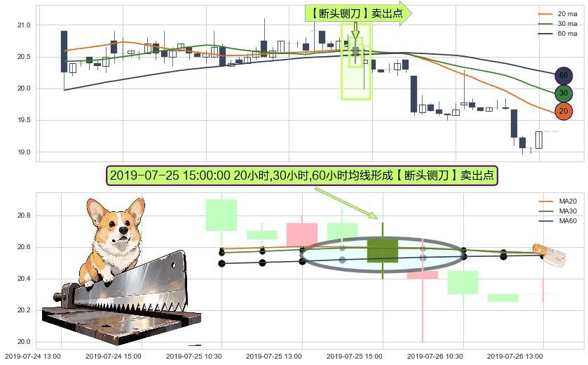 形态多维评估: ⚀ 2019-07-25 15:00:00小时显现 20小时-30小时-60小时均线 【断头铡刀】卖出点 看空信号,后市看跌,卖出