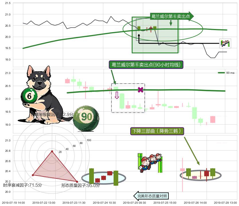 | 6 🅚:下跌两颗星 | 下跌三颗星 ➕ 🎢:【战机起航】卖出点均线组合卖出点信号形成后,猜想后续上行结束,持续回落下跌(均值回复) ☞ 看空信号 ⇥ 【均线】交织【🅚线】⇥ 综合量化分数: 49 | > |