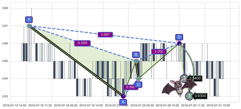 ➣ 已完成【蝙蝠】形态起点X: 07-12:15, 终点D: 07-26:14, 共60交易小时