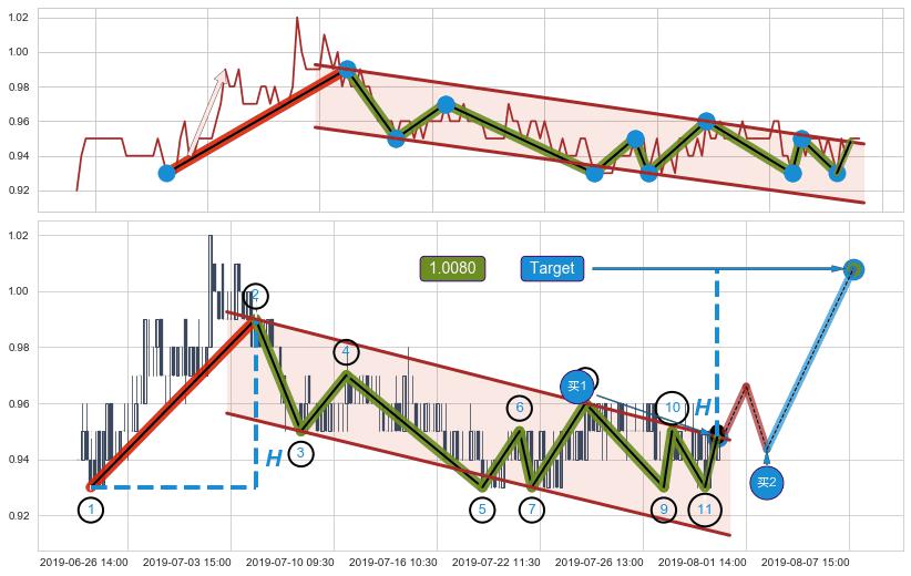 ➣ 07-29:09到达第❷价格目标位置0.9400