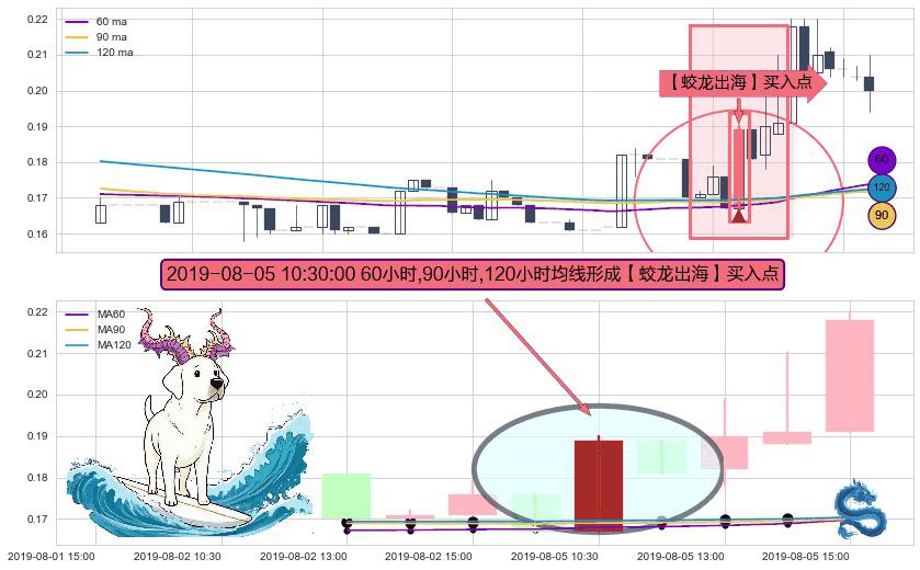 ⚀ 2019-08-05 10:30:00小时显现 60小时-90小时-120小时均线 【蛟龙出海】买入点 看多信号,后市看涨,买入