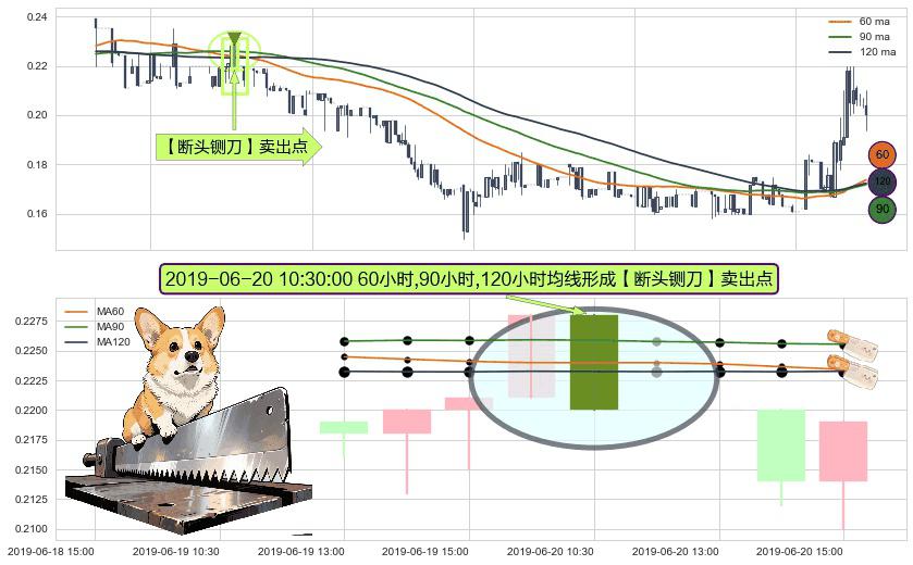 ⚀ 2019-06-20 10:30:00小时显现 60小时-90小时-120小时均线 【断头铡刀】卖出点 看空信号,后市看跌,卖出