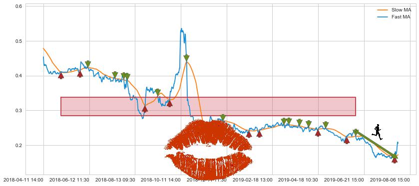 05-04 14:00至06-12 11:30 慢线与快线多次接触,存在上下穿越,有缠绕