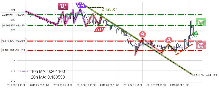 ♘ 阻力价格位0.208857,可信任强度75.63%,距离最后交易2019-08-06 15:00形成的收盘价格0.200000相差 +4.43%