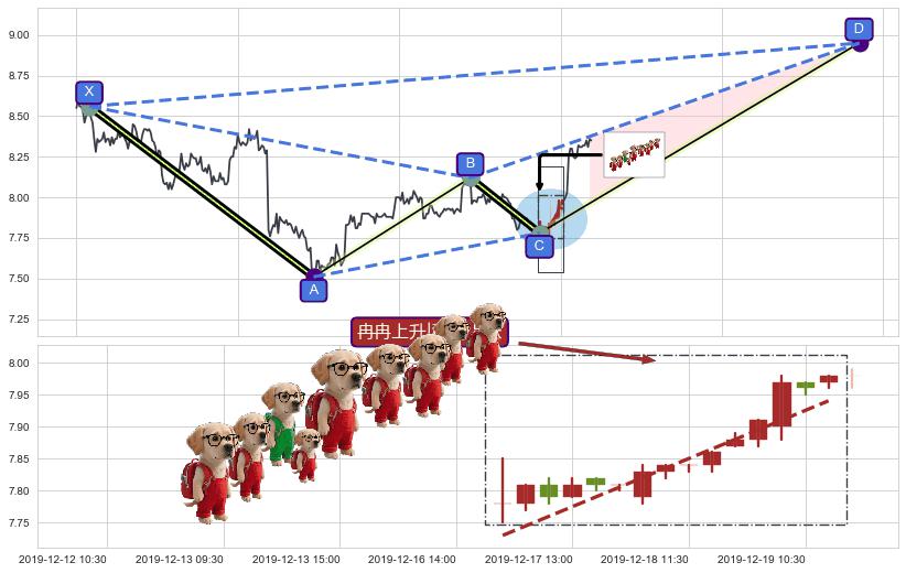 ➣ D点拟合预测价格8.95,距离最后交易收盘价格8.35相差 +7.19%