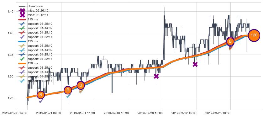 上涨趋势01-08 14:00-03-29 15:00,均线120, 115, 125确认关键支撑4处