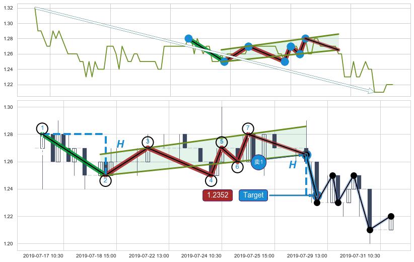 ➣ 07-29:10到达第❷价格目标位置1.2300