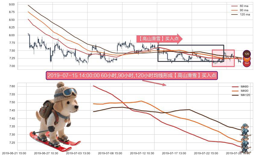 ⚀ 2019-07-03 15:00:00小时-2019-07-25 11:30:00小时显现 60小时-90小时-120小时均线 【高山滑雪】买入点 看多信号,后市看涨,买入