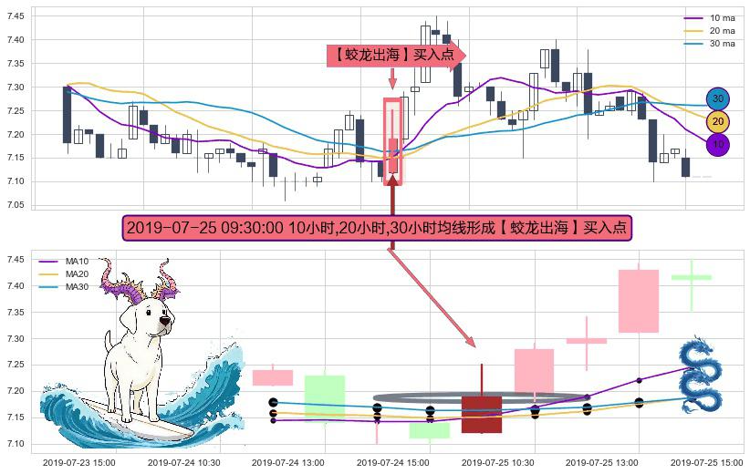 ⚀ 2019-07-25 09:30:00小时显现 10小时-20小时-30小时均线 【蛟龙出海】买入点 看多信号,后市看涨,买入