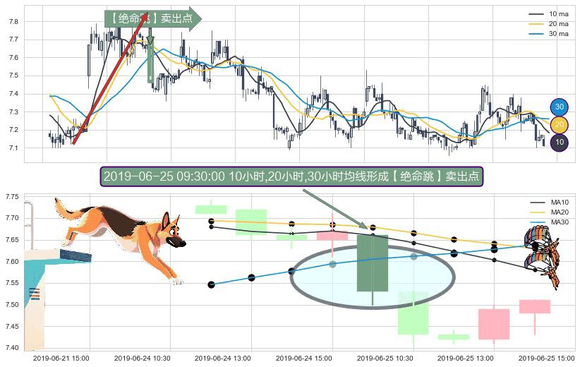 ⚀ 2019-06-25 09:30:00小时显现 10小时-20小时-30小时均线 【绝命跳】卖出点 看空信号,后市看跌,卖出