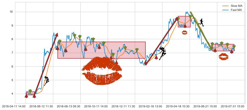 06-12 14:00至07-30 15:00 慢线与快线多次接触,存在上下穿越,有缠绕