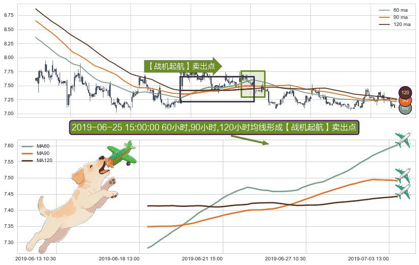 ⚀ 2019-06-18 15:00:00小时-2019-07-03 15:00:00小时显现 60小时-90小时-120小时均线 【战机起航】卖出点 看空信号,后市看跌,卖出