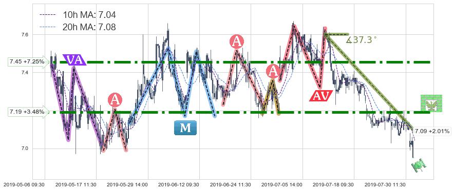 ♘ 阻力价格位7.45,可信任强度98.75%,距离最后交易2019-07-31 15:00形成的收盘价格6.95相差 +7.25%
