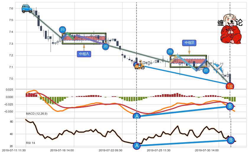 ➣ 【中枢B】:07-25:11-07-29:15,中枢由4笔构成,共16交易小时, ZG=7.16, ZD=7.14