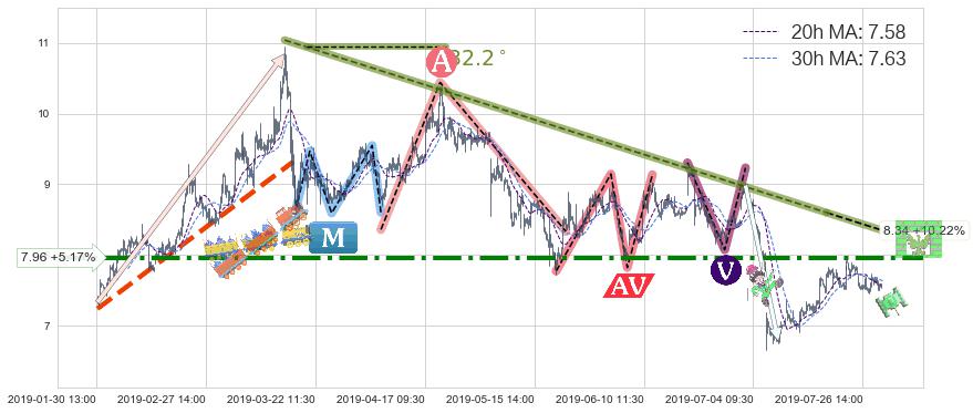 2019-05-20: 第一阻力位7.96有效抑制了下跌浪,成功阻止了价格的继续下跌。
