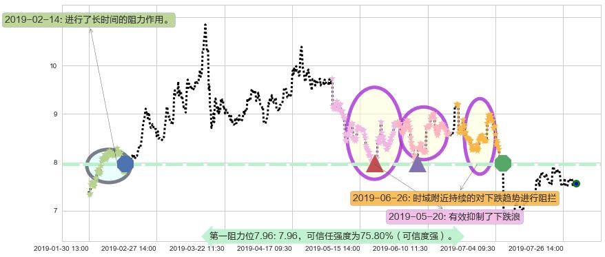 ♘ 阻力价格位7.96,可信任强度75.80%,距离最后交易2019-07-31 15:00形成的收盘价格7.57相差 +5.17%