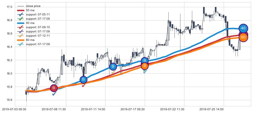 上涨趋势07-03 09:30-07-29 09:30,均线40, 60, 55确认关键支撑4处