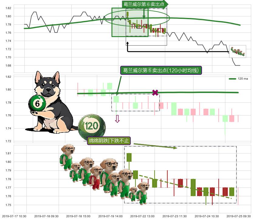 从2019-07-12 11:30至2019-07-31 15:00,共包含82个小时,阶段股价下跌-4.53%,阶段股价变动位移路程比: 1 : 7
