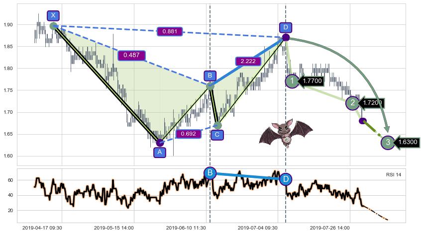 ➣ 已完成【蝙蝠】形态起点X: 04-15:09, 终点D: 07-05:15, 共324交易小时