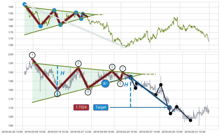 ➣ 【已达成】最小【整理】第一目标价格→(05-14:09: 1.7024 ), 后续继续【整理】下跌动力依然存在,下跌空间适中