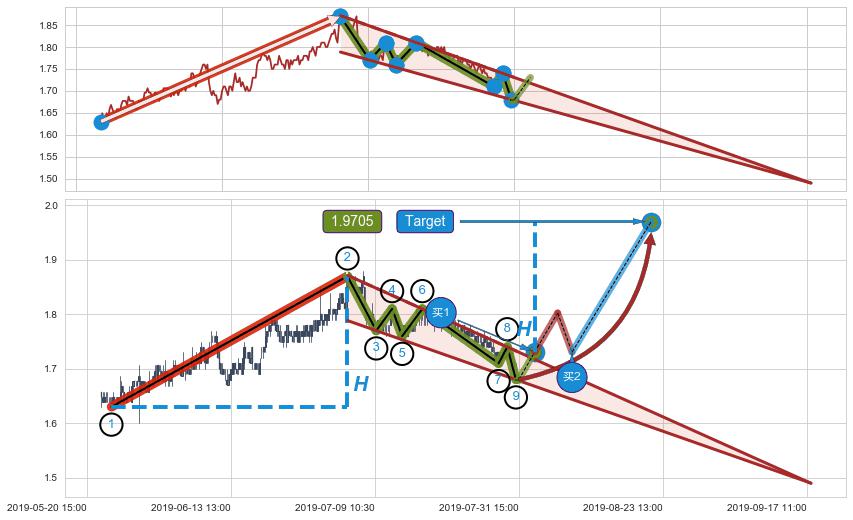 ➢ 最小中继整理涨幅→𝐇: 0.240000 (𝐇楔型旗杆的长度:楔型起点→顶点)