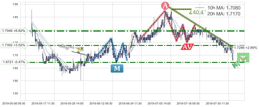 ♘ 阻力价格位1.7946,可信任强度78.21%,距离最后交易2019-07-31 15:00形成的收盘价格1.6800相差 +6.82%