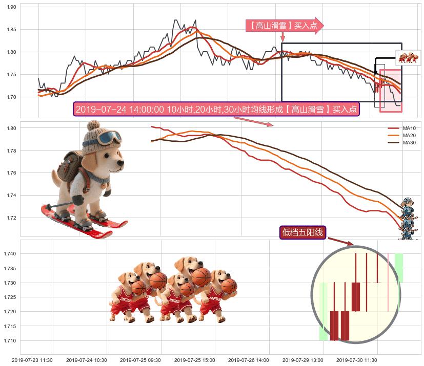 从2019-07-09 11:30至2019-07-16 14:00,共包含33个小时,阶段股价上涨2.31%,阶段股价变动位移路程比: 1 : 7