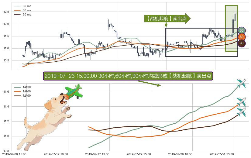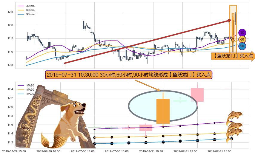 形态多维评估: ⚀ 2019-07-31 10:30:00小时显现 30小时-60小时-90小时均线 【鱼跃龙门】买入点 看多信号,后市看涨,买入
