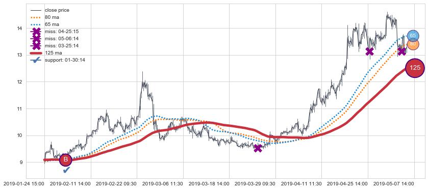 上涨趋势01-24 15:00-05-07 14:00,均线125确认关键支撑1处