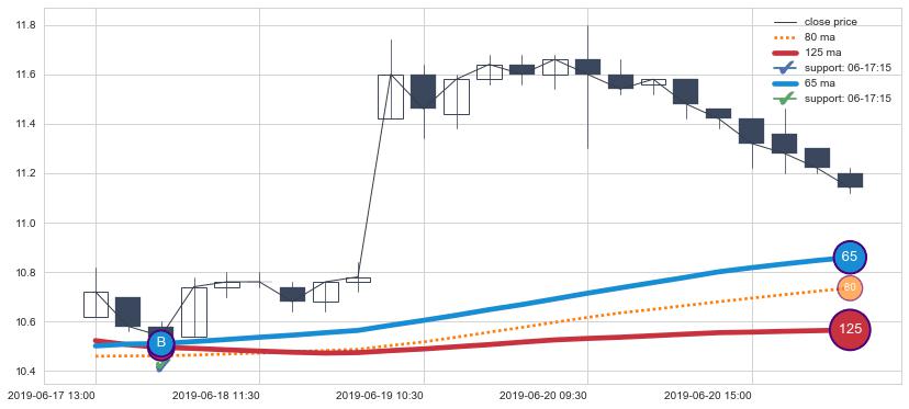 上涨趋势06-17 13:00-06-21 11:30,均线65, 125确认关键支撑1处