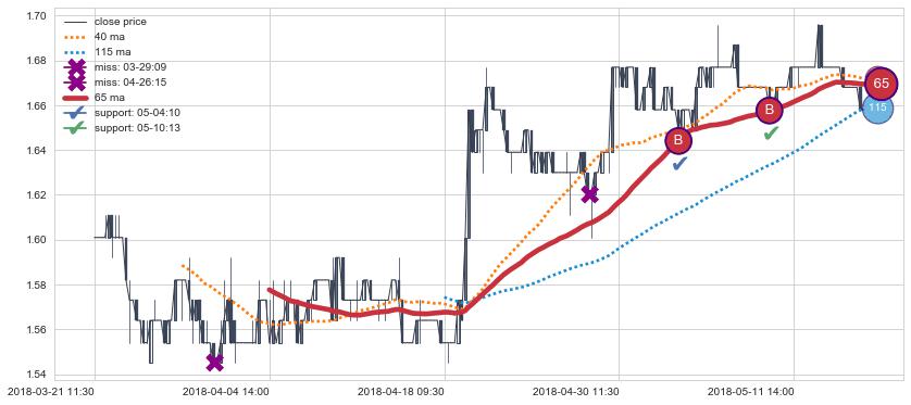 上涨趋势03-21 11:30-05-17 09:30,均线65确认关键支撑2处