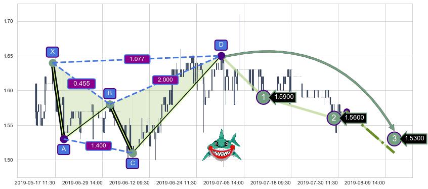 ➣ 已完成【鲨鱼】形态起点X: 05-16:15, 终点D: 06-28:14, 共180交易小时