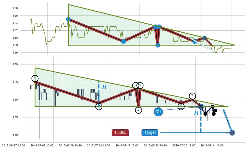 ➣ 07-29:14到达第❷价格目标位置1.5600