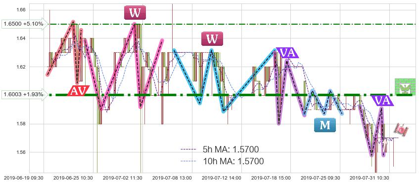 ♘ 阻力价格位1.6003,可信任强度98.07%,距离最后交易2019-07-31 15:00形成的收盘价格1.5700相差 +1.93%