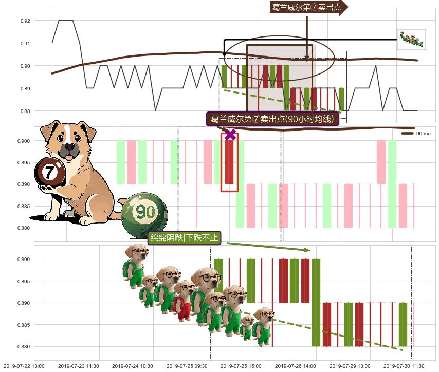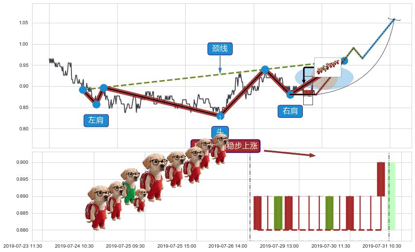 ➢ 最后的下跌趋势2019-03-04 10:30至2019-07-04 09:30:存在突破迹象,后续小反弹或者反转上涨