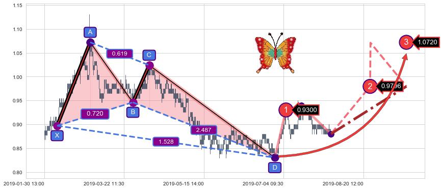 ➣ 已完成【蝴蝶】形态起点X: 02-12:11, 终点D: 06-27:11, 共547交易小时